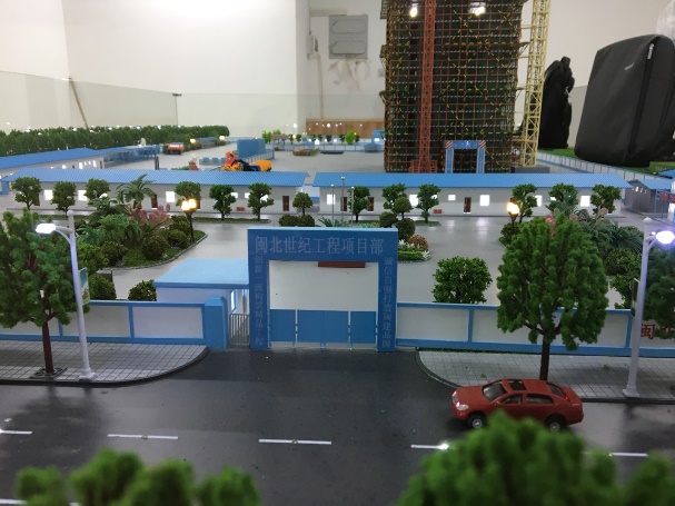2、沙盘模型应按照福建地区施工文明工地标准要求进行现场布置,如用施工企业标示的围墙进行划分生活区和作业区、消防设施等等。