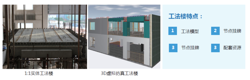 在学校资金和场地都较为充裕的情况下,为了更好的学习效果,我们推荐学校建设“装配式建筑工法楼实训基地”,该基地搭载了装配式混凝土框架体系和装配式混凝土剪力墙体系的构成、叠合板、梁及部分建设构件构造节点的展示和配套知识学习(通过平台和手机二维码)。