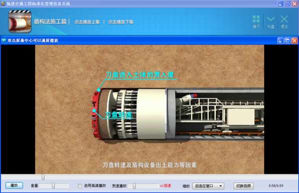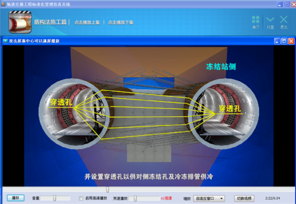 系统开发以教学大纲为要求,以施工工艺为主线、以标准规范为依据,系统有盾构法施工、矿山法施工、管片生产、地下车站施工等4 大项标准化内容,33个分部分项内容。视频时长达137 分钟。