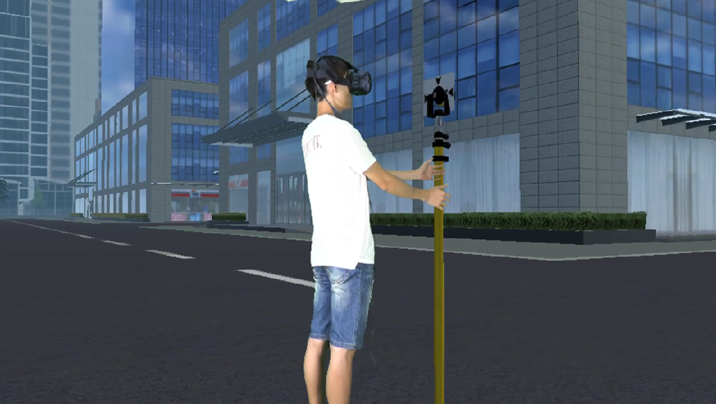5、VR多人联机:在相同的实训室景中,架设多台虚拟设备,通过网络联机的方式,让多人在场景中完成相关任务的操作。如图测量实训室中学生甲乙均通过穿戴设备,协助配合完成测量任务。