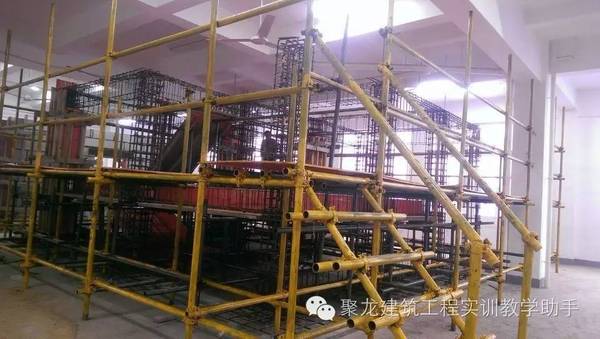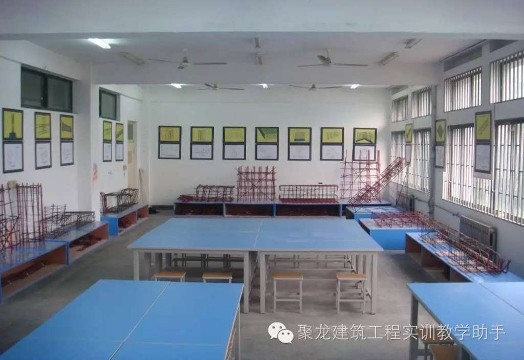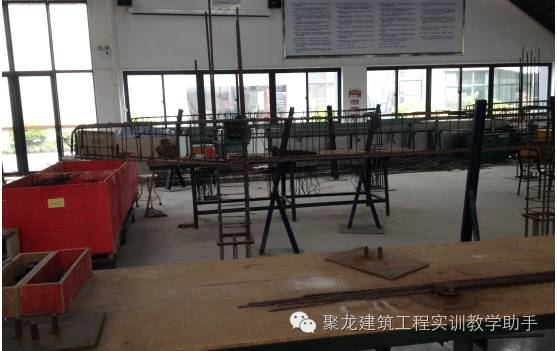 为配合师生练习绑扎钢筋实物,根据结构施工图,罗列出需要的钢筋规格、钢筋形状、断料长度、钢筋根数、钢筋重量等列表、并绘出各种形状和规格的单根钢筋简图并加以编号,然后分别计算钢筋下料长度、根数及质量,填写配料单,配一套完整的备料,用于学生自己动手练习绑扎钢筋。钢筋绑扎操作区还配备有钢筋操作台、钢筋骨架绑扎放置架、钢筋绑扎所需要的扎丝和扎钩,方便学生进行绑扎练习操作,可完成柱和梁的钢筋加工操作。
