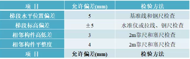 1、楼梯吊装完成后需进行安装质量进行检查验收,安装的允许偏差应符合下表的规定。