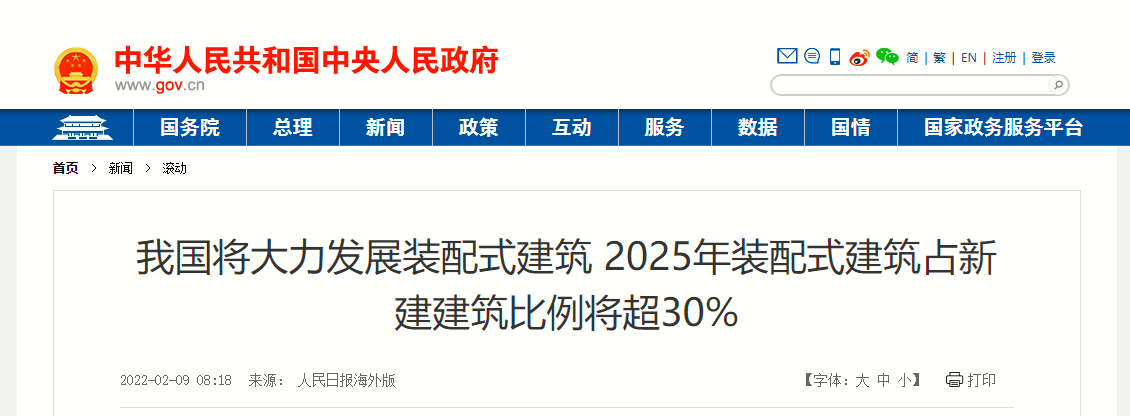 我国将大力发展装配式建筑 2025年装配式建筑占新建建筑比例将超30%