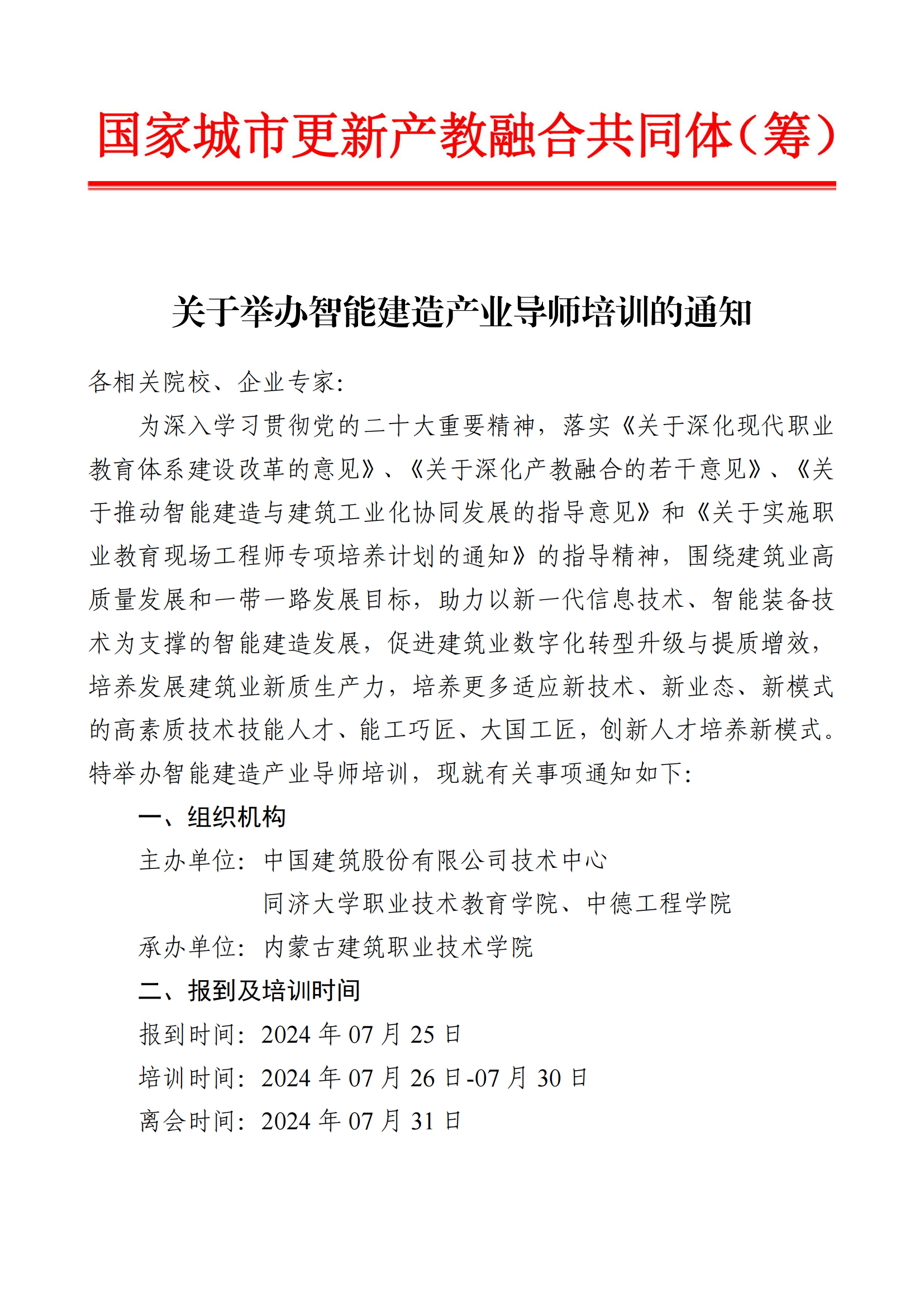 2024年7月25日-31日关于举办智能建造产业导师培训的通知(内蒙站)