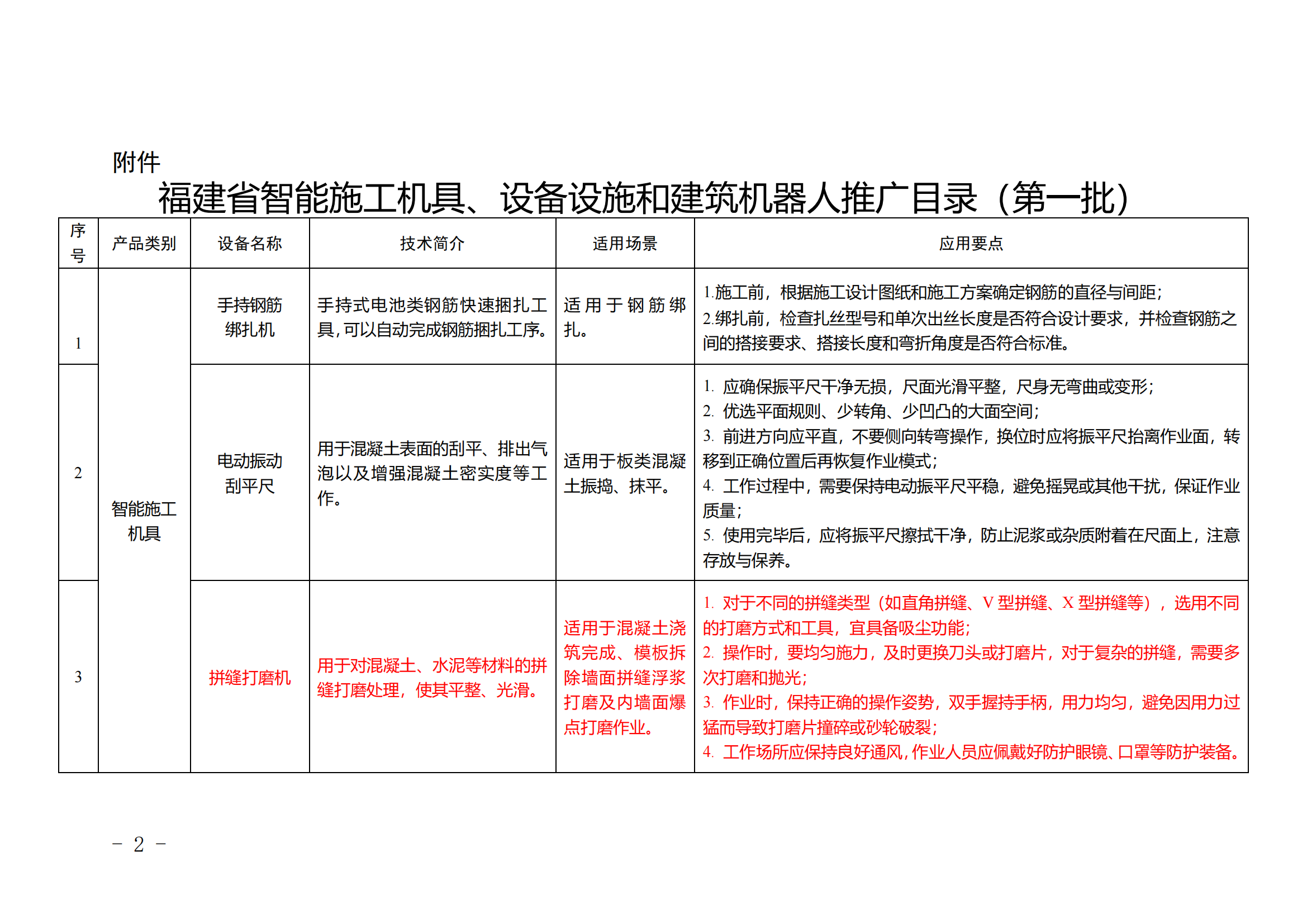 附件:福建省智能施工机具、设备设施和建筑机器人推广目录(第一版)