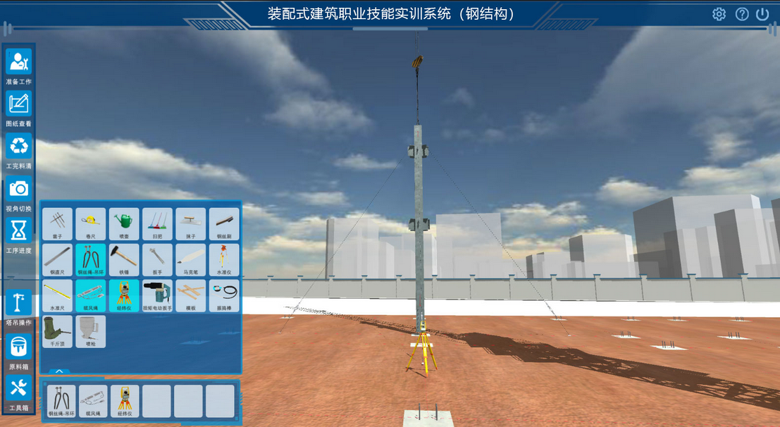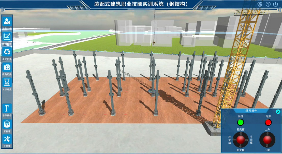 产业发展,人才先行,为促进钢结构装配式建筑的产业发展,相应的人才培养是首要条件,但当前装配式建筑施工技术属于新兴快速发展领域,行业人才需求缺口巨大。为协助职业院校钢结构装配式建筑技能型人才培养,切实改善院校教学条件,我公司运用成熟的虚拟仿真技术,结合钢结构装配式建筑施工技术特点进行设计,打造满足院校日常钢结构装配式“教”、“学”、“训”、“考”一体化教学需求的综合实训系统,实现理论学习、实训项目教学和任务驱动教学。
