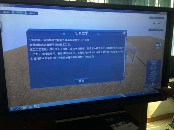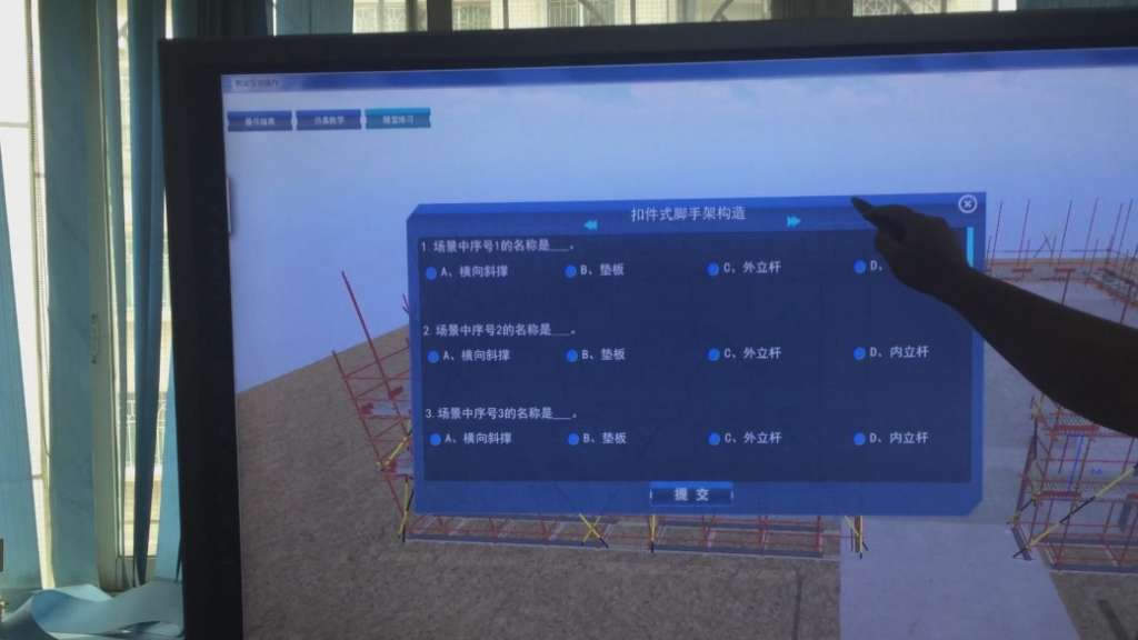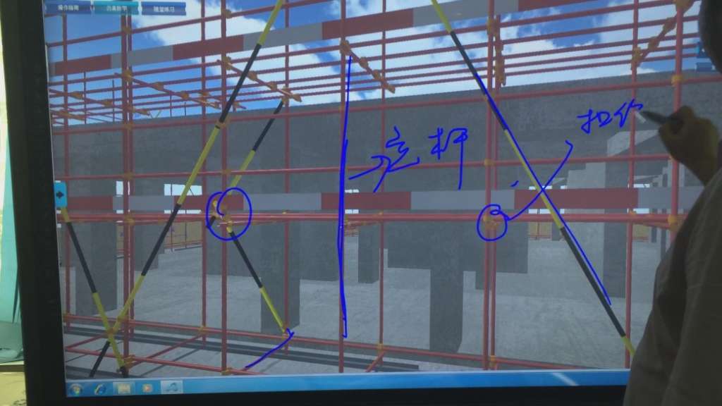 教师可登录“建筑施工安全标准可视化三维仿真教学实训管理平台教学端”调取各部位的教学内容进行授课,结合大屏幕触摸屏幕进行施工安全、施工技术知识的教学。