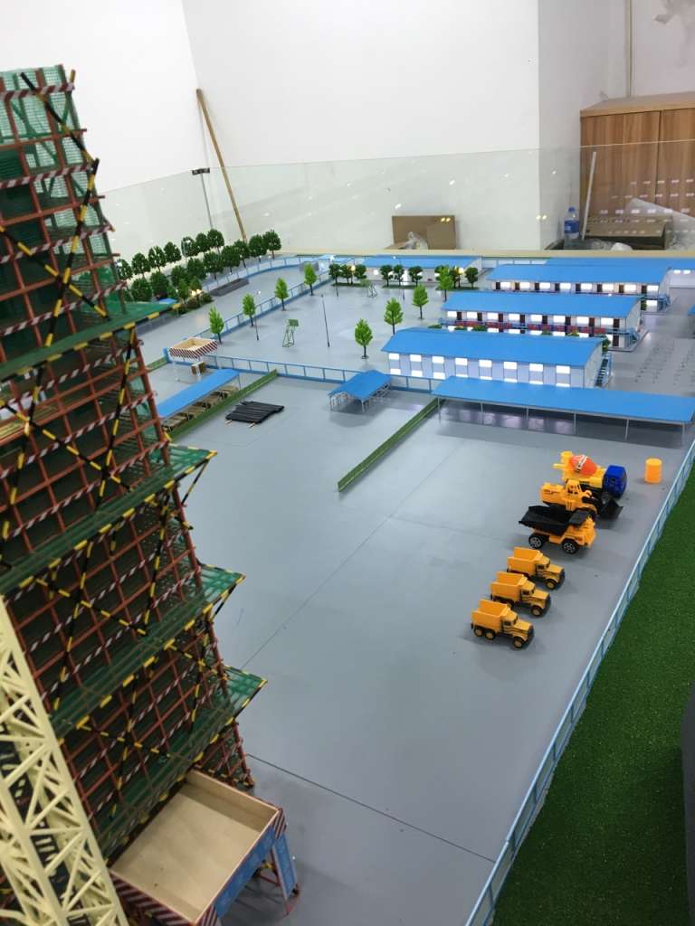 2、沙盘模型应按照福建地区施工文明工地标准要求进行现场布置,如用施工企业标示的围墙进行划分生活区和作业区、消防设施等等。