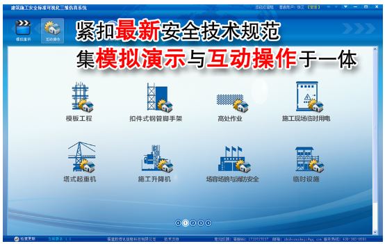 本平台是福建省住建厅、省质检总站、福建省安全协会指定建筑施工三级教育教学推广产品,平台涵盖施工现场临时用电、模板工程、扣件式钢管脚手架、高处作业、塔式起重机、施工升降机、场容场貌与消防安全、临时设施共八项内容。 平台内容研发充分考虑到各分部分项工程的主要风险因素及其影响程度,以系统性、相关性、实用性等原则,通过三维仿真等技术,真实、生动、标准地再现建筑施工工艺和安全防护要点,为建筑企业安全施工和管理提供强有力的服务和保障。