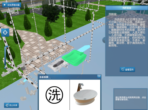 设备安装工程识图仿真教学软件,以一个地下1层、地上13层的教学综合楼实际工程项目为教学案例,通过三维建筑场景,将传统教学形式中难以用文字描述的知识内容,利用实际三维拆分演示和动画交互讲解,清楚直观地展示在学生面前。