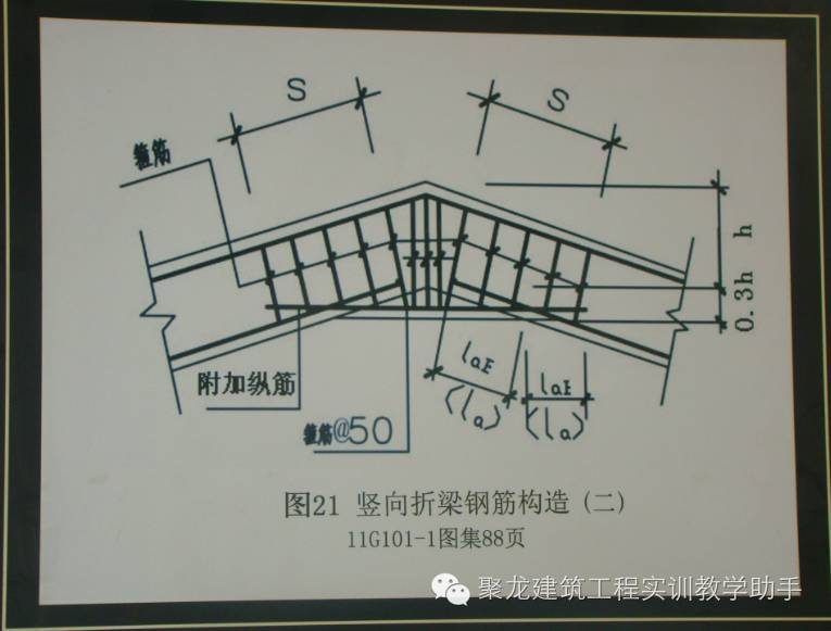 3、标准尺寸钢筋节点展示图。严格按照11G101图集的设计要求,结合钢筋节点的实物60副展示图,采用统一尺寸50*65cm(高*长)的钢筋彩色三维虚拟图和图集原设计图置于墙面。其大体内容包含:节点名称、图集页码、构件说明、注意点等使学生在绑扎钢筋时作为标准参照。掌握该构件的知识要点及绑扎要领。