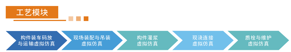 根据建筑产业现代化工艺流程特点,综合行业规范,贯穿教学难、重点,利用虚拟仿真技术,依据构件运输和装配式施工岗位流程进行设计,实现装配式建筑过程的仿真模拟、动态演示、交互式操作实训、结果智能考核等多项功能。产品根据真实企业生产岗位需求进行模块化划分,实现独立的学习、训练、考核和评价功能。所实训的构件依据标准图集典型构件进行设计,依据工艺模块分为:构件装车码放与运输虚拟仿真、现场装配准备与吊装虚拟仿真、构件灌浆虚拟仿真、现浇连接虚拟仿真、质检与维护虚拟仿真等5个模块。产品可配套《装配式建筑施工技术》教材进行教学。